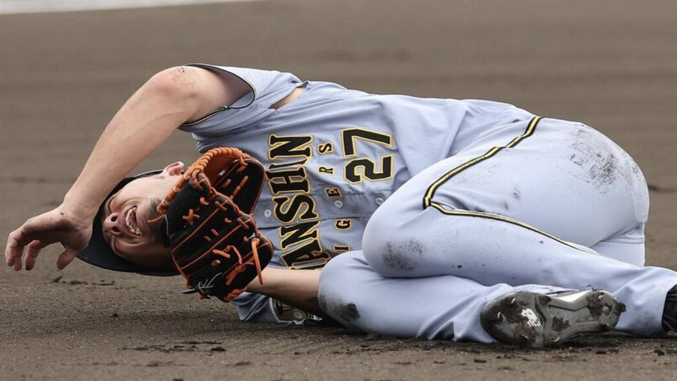 前川選手にヒットを許し、本塁へのバックアップに入ろうとした際、突然うずくまりました。激痛に顔をゆがめ、自力で立ち上がることができず担架で運ばれる事態に。