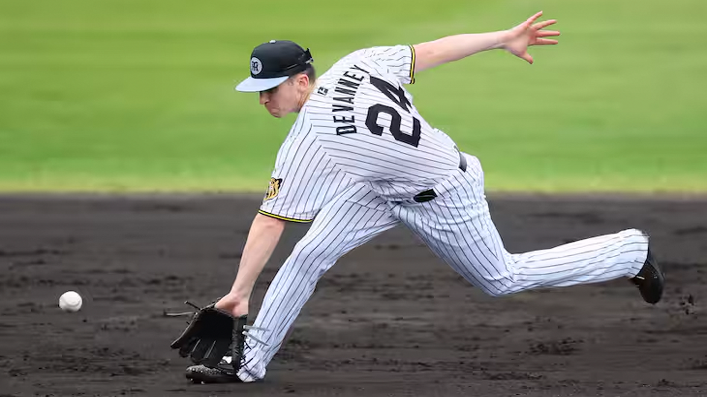 甲子園の黒土の上で、ディベイニー選手がどんな華麗なグラブさばきを見せてくれるのか。