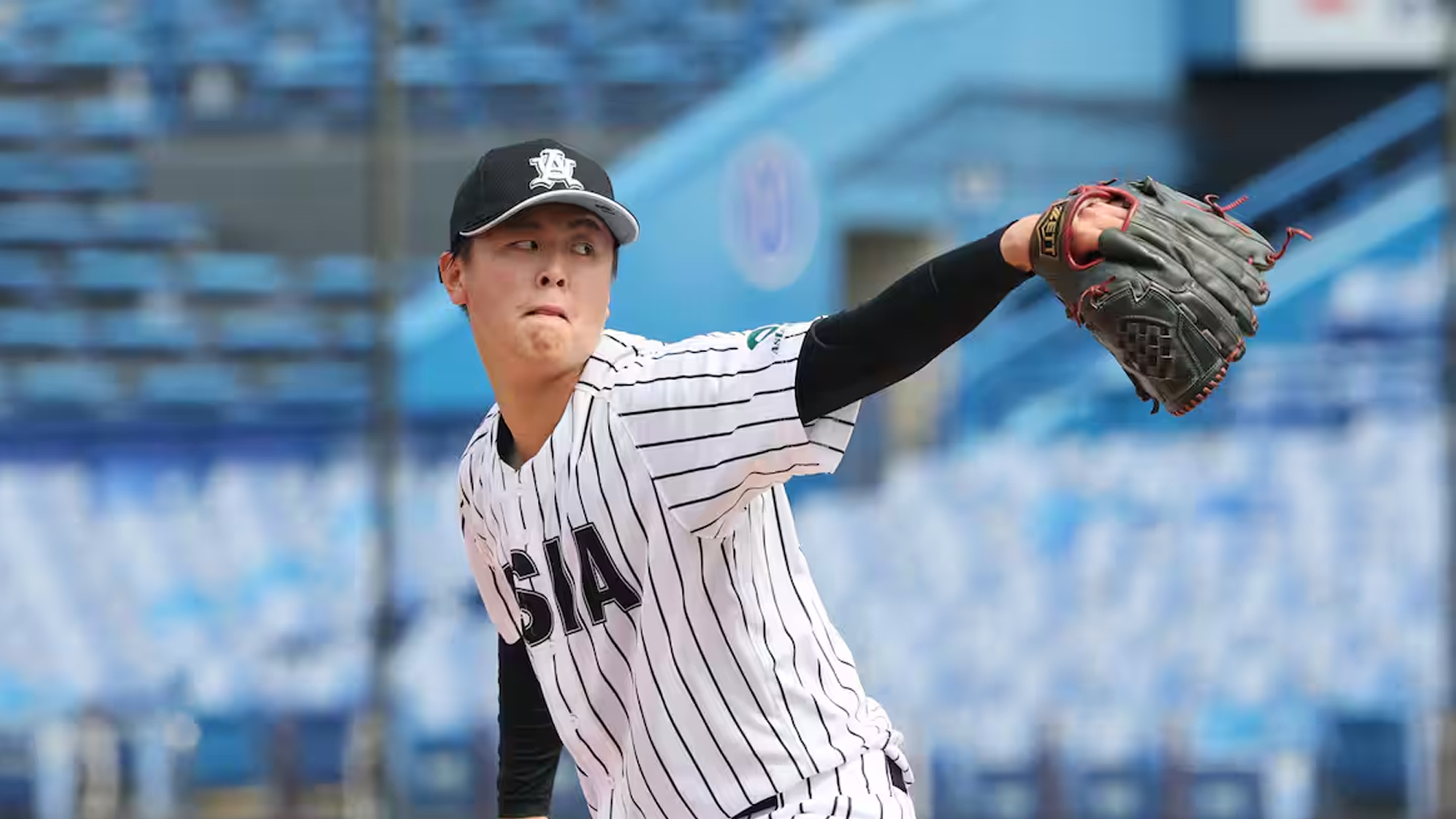 1学年先輩の斉藤汰直投手(広島)、山城京平投手(巨人)という強力な二枚看板が抜けた亜細亜大学のマウンドで、背番号を継承する新たな剛腕がそのベールを脱ぎました。